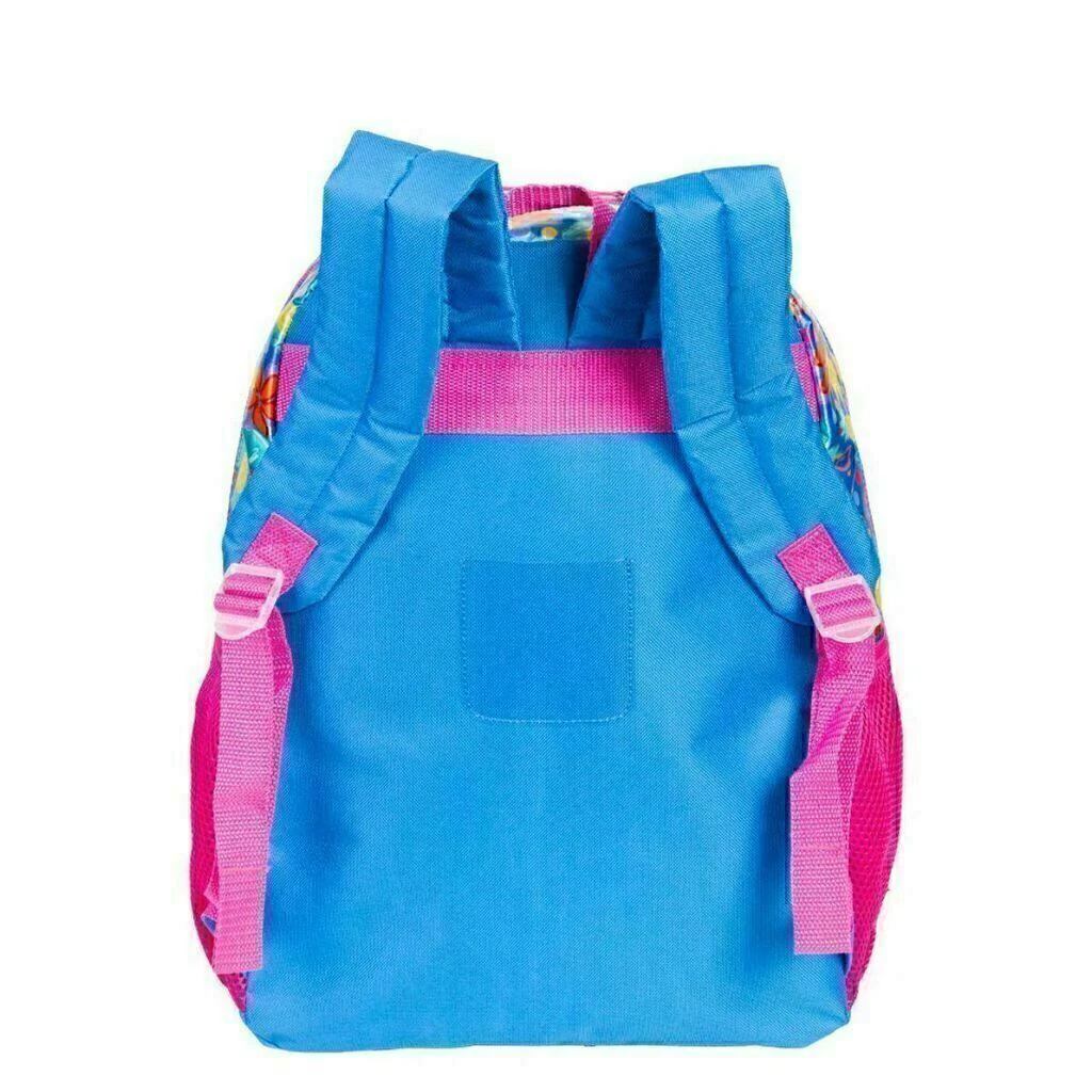 Uma mochila alegre, como um dia de verão! A linha floral possui estampa cheia de flores e frutas, em um tecido de cetim, além de apliques com glitter, que dão um charme a mais. Em uma mistura de materiais que estão super em alta, o bolso frontal é feito em PVC pink transparente. A versão com alça de costas tem reforço na costura e ajuste para altura do ombro.